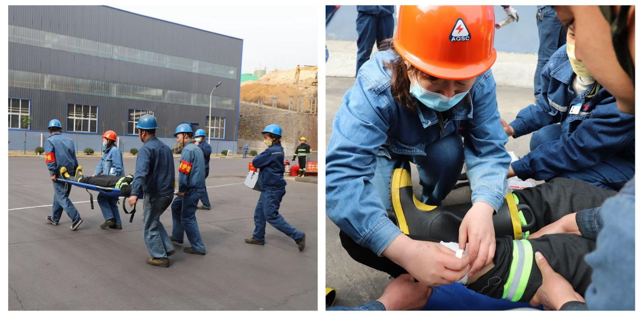 各应急小组接到分工指示后迅速赶往现场,投入抢险工作中,在火灾面前临危不乱,有序进行初步灭火,展开现场警戒,安全疏散、帮助伤员撤离,转移物资等工作,配合集团消防队快速灭火。